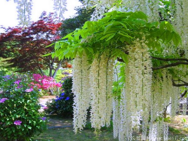 紫藤在公園綠化中應(yīng)用比較大面積,由于花期為雨季,是缺花時間,粉紅色花朵相當(dāng)漂亮,給酷熱的雨季帶去一些清涼,是庭院觀賞的要好種類材料。紫藤能夠用于栽植色帶,組字,道路綠化,住宅綠化,醫(yī)院綠化等,栽植效果來的快,緩苗期短,景觀效果好。